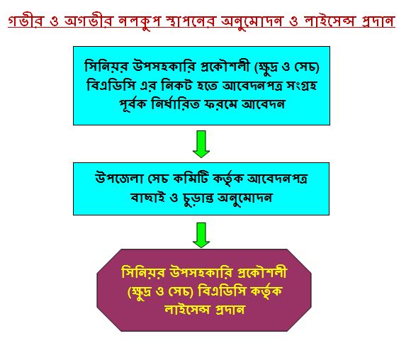 গভীর ও অগভীর নলকুপ স্থাপনের অনুমোদন ও লাইসেন্স প্রদান